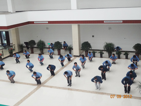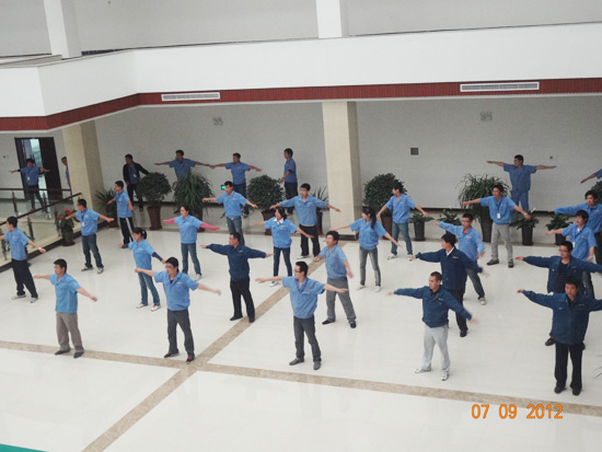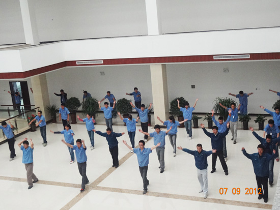 公司以关爱职工健康为出发点,本着“关注健康、珍爱生命、善待身体、快乐工作”的理念,结合工作组织开展员工工间健身活动。此项活动的开展得到了广大员工的积极参与和响应,对于增强员工体质,缓解工作压力,提高工作效率,起到了积极的作用。