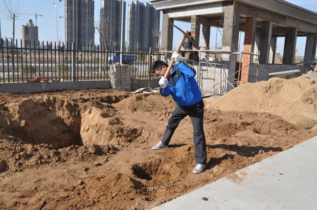 参加植树的同事们个个热情高涨,在和煦的春风中紧张忙碌着。